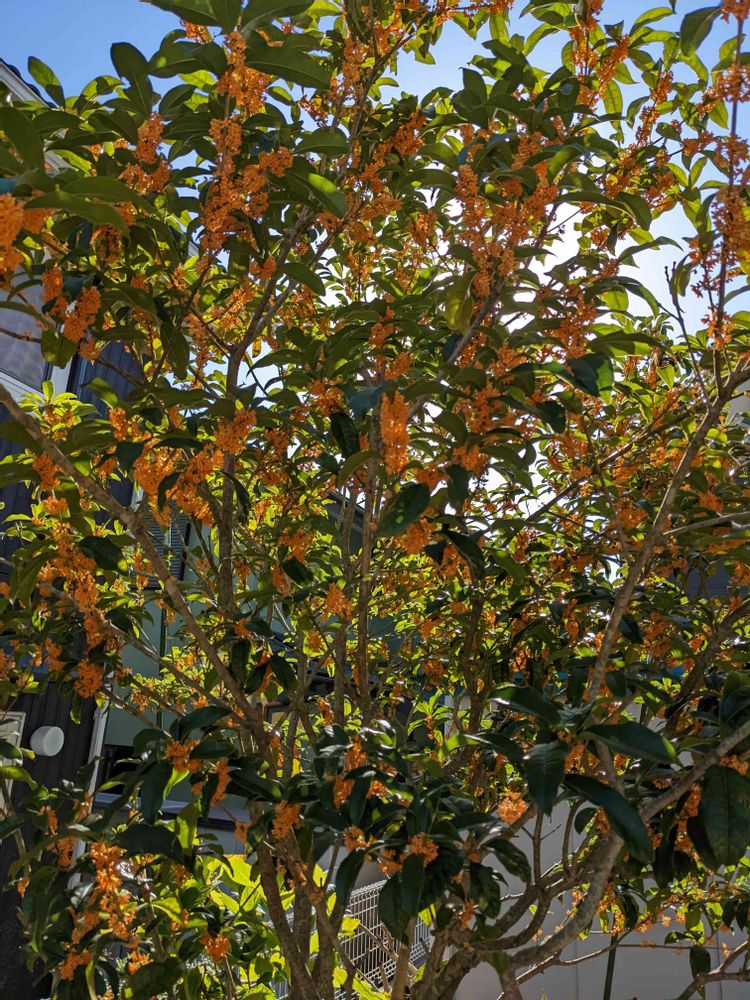 キンモクセイ✨✨全部の枝にお花が咲いてます😚キンモクセイ凄いですね。昨年剪定というか小枝をバキバキ切ってのが良かったのかな~😁