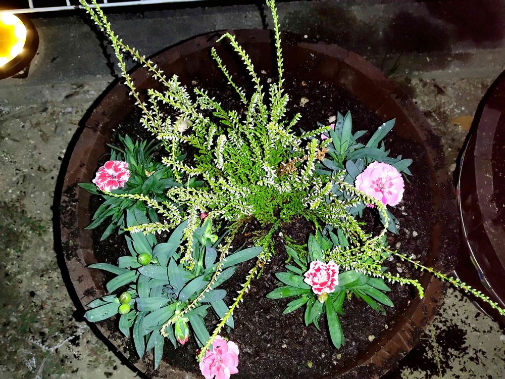 こんばんわ。秋の寄植え作成しました。ダイアンサスとカルーナとチューリップ球根仕込みました。楽しみです。