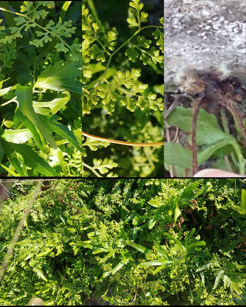 アスファルトの裂け目にあったカニクサ天国。映ってるの全部カニクサ。やば。
