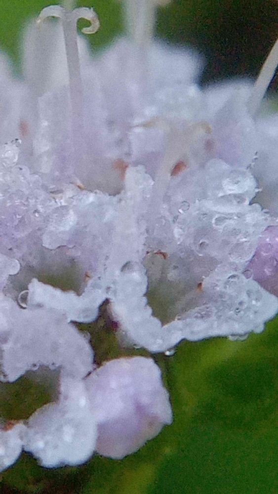 ダンギクのように茎の周りを取り巻き小さな花が朝露を含んでいました❤️