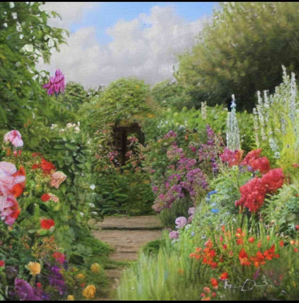 8K, ヒドコート・マナー・ガーデン,庭園,花,高品質,リアル,写実的,油絵,幻想的