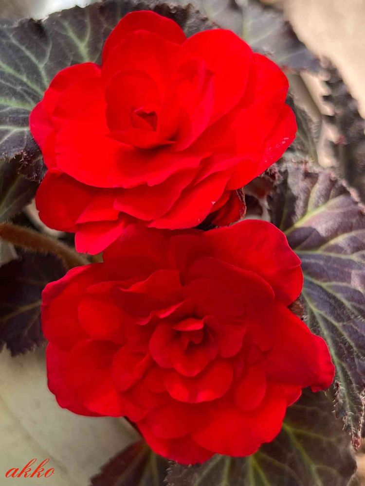 真っ赤な球根ベゴニアの花が、2つになりました❤❤