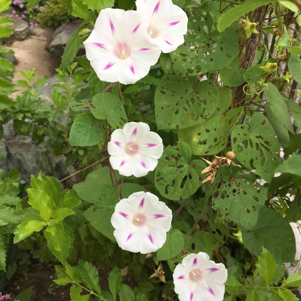 ミルキーウェイの朝顔の事ですが私は名前も分からず自分で勝手にシルキー朝顔と言ってました。名前が分かって嬉しくなりました。わが家の朝顔もまだまだ元気に咲いています。ピンクも紫もあります。もう10年以上前から種を蒔かないのに零れ種で毎年咲いてくれます。丈夫な朝顔ですね。