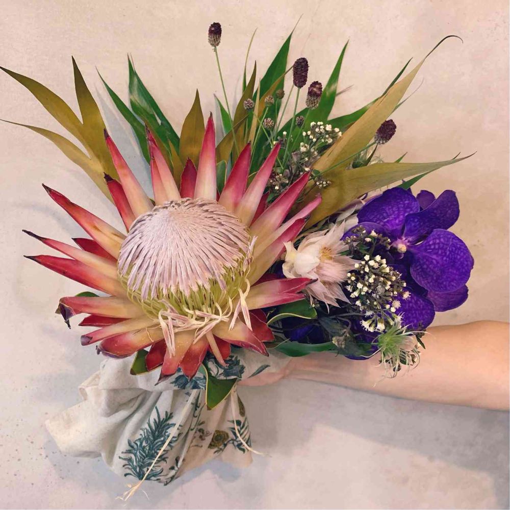 インパクトのあるお花をメインにしたけど、ワレモコウ、フジバカマが秋のニュアンスを加味してくれてる。