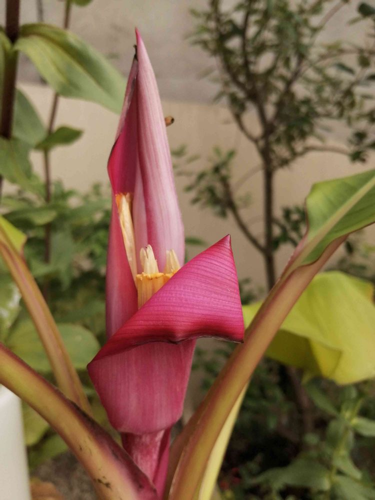 ヤッター!ちょっと遅かったかしら?待ちに待ったアケビバナナ(ピンクバナナ)に花が咲いたよ٩(๑´3`๑)۶実がなるかどうかはわからんけど🙃とりあえずウレシ〜!