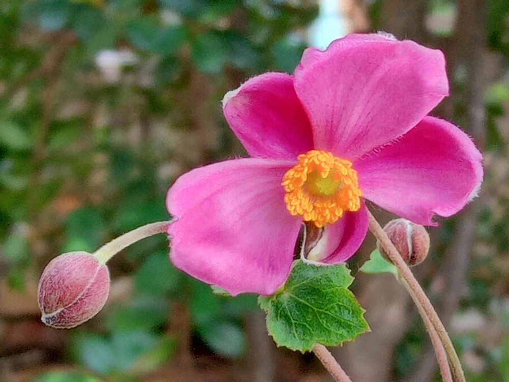 少し小さ目の秋明菊がやっと蕾から目覚めました💞
