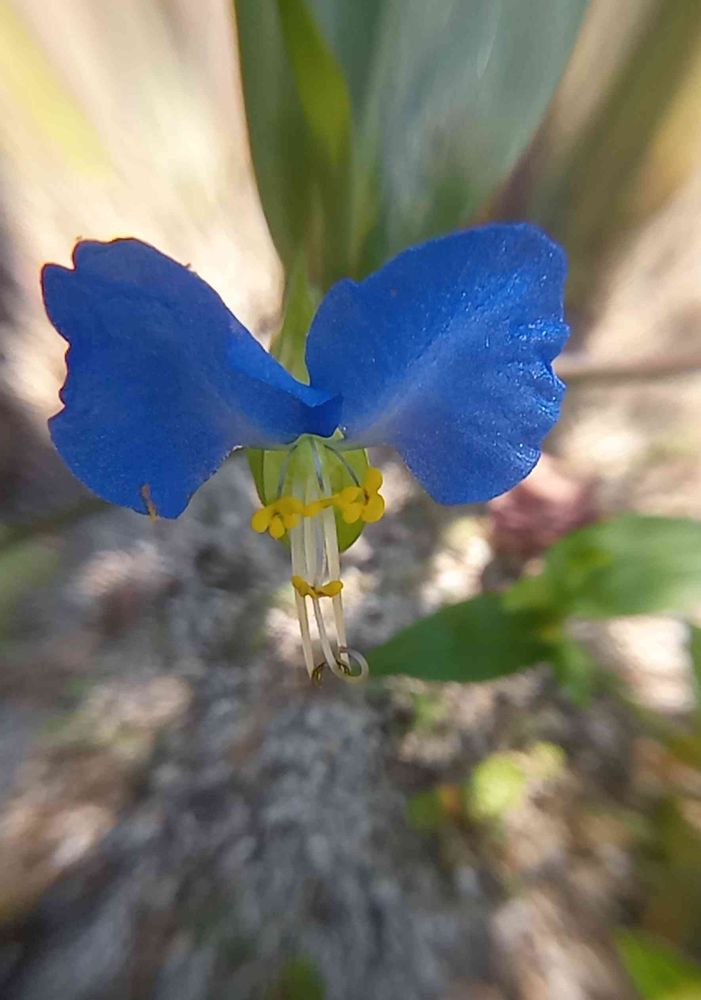 庭で咲いているツユクサを、百均マクロで写してみました。