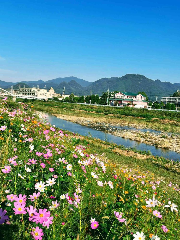 仁保川の河川敷のコスモスが、