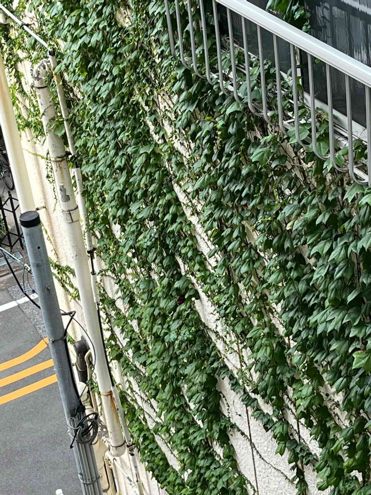 隣りの小さなビルの壁🍀 蔦がだんだん、すごくなってきてる😱 太陽☀️に照らされると わりとステキなのに、夜見るとドラキュラが立ち寄りそうで、怖い😓