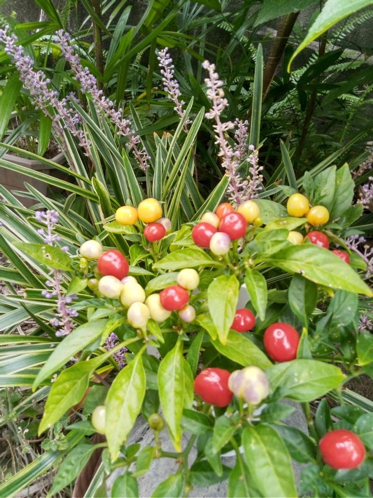 去年は紫の唐辛子を寄せ植えにしていたのですが 今年は見つけられず カラフルなのにしました😊