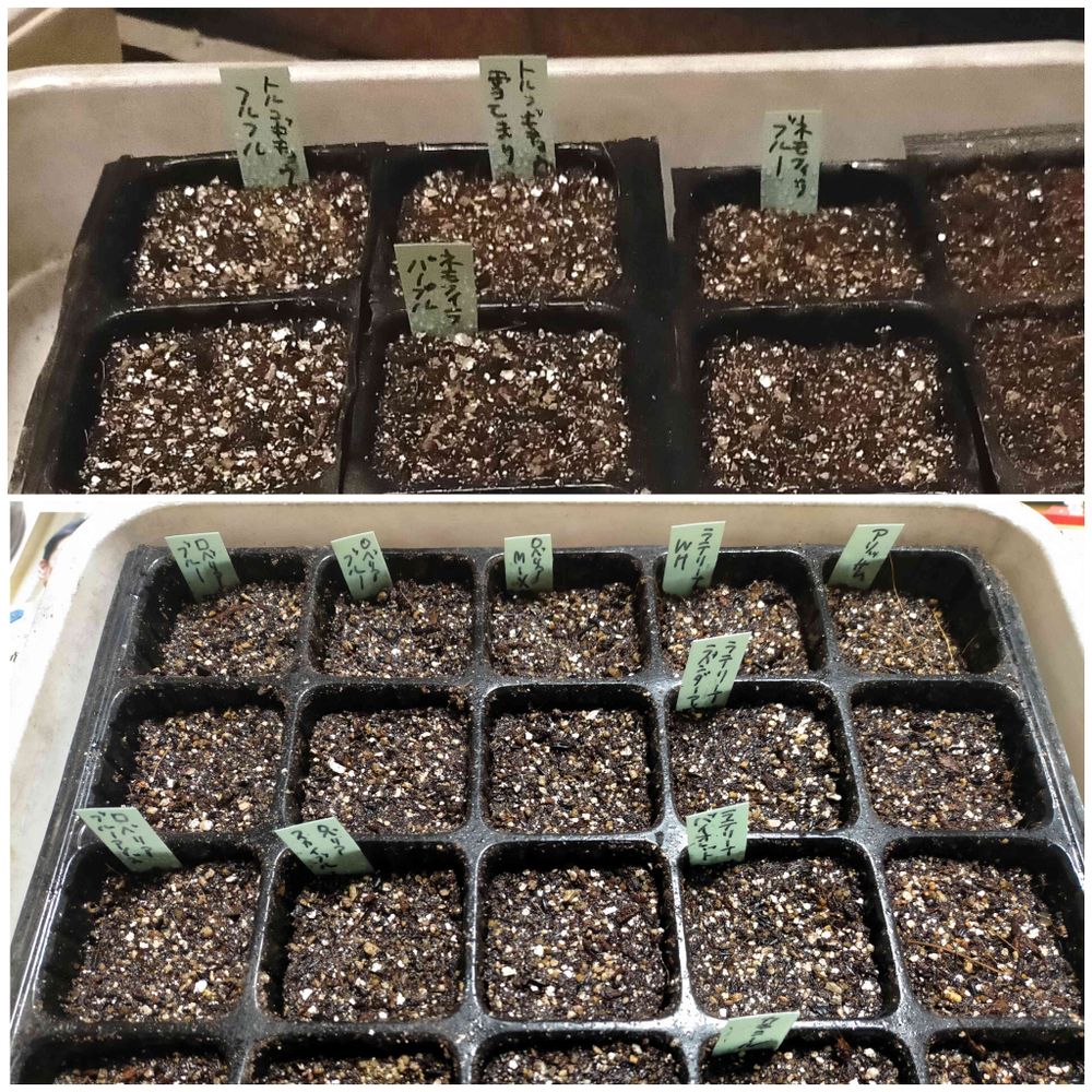 トルコギキョウは今年買ったフルフルミックスと、有効期限が2017年だった雪てまりを蒔いてみました。トルコギキョウは赤ちゃん苗のまま春までほぼ成長しないので、冬の間の管理が出来るかどうかが成功の鍵。忘れちゃいそうな予感です😅💦