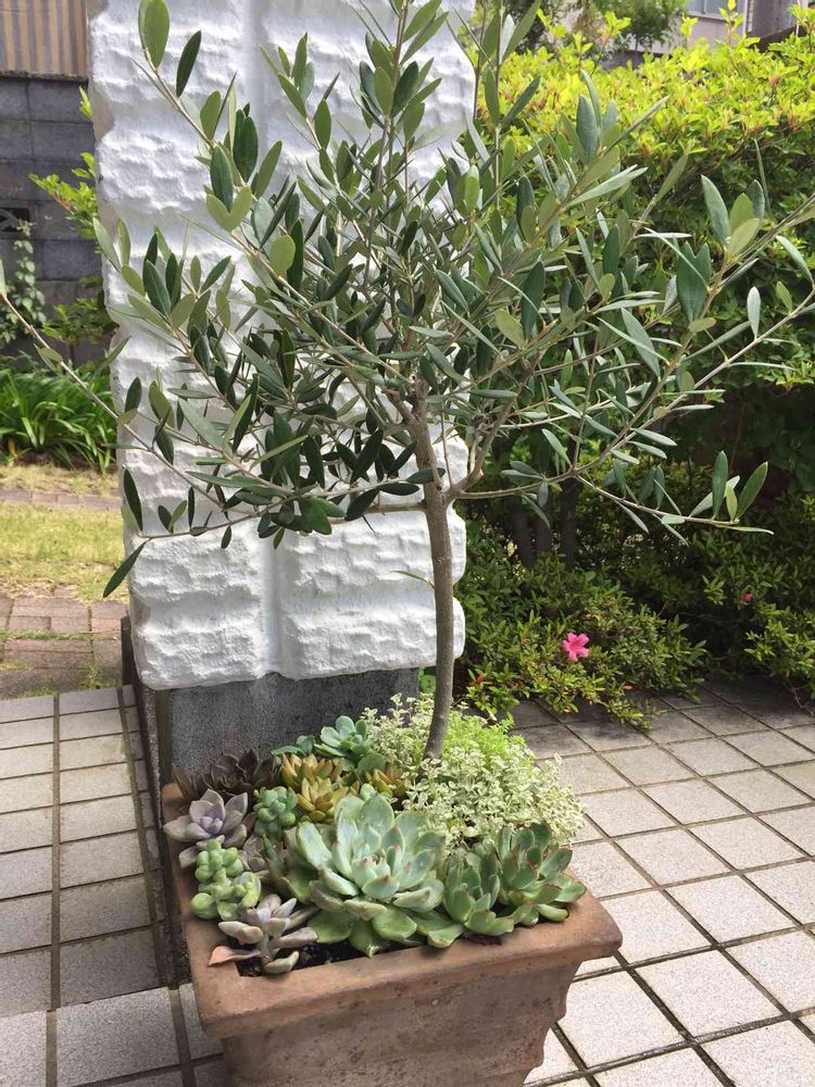 まゆまゆさんのエントランス,オリーブ,タニク寄せ植えの投稿画像