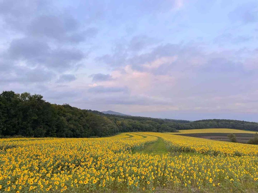 夕方の空が綺麗だったので隣り町の秋のヒマワリ見てきたよ〜🌻