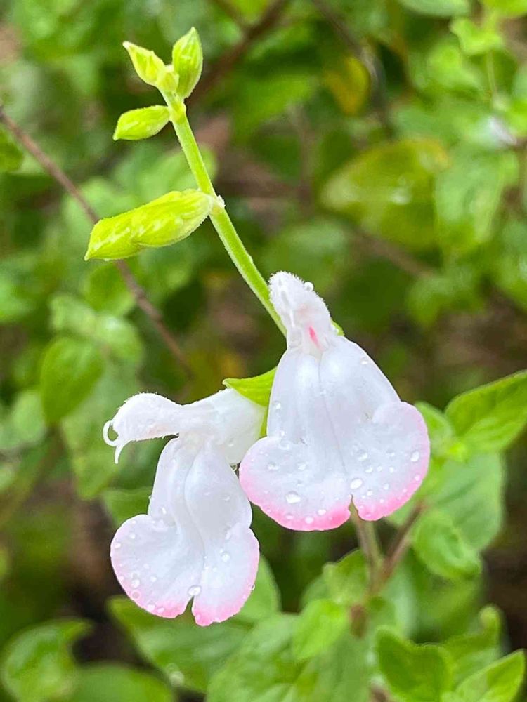 赤いチェリーセージも可愛いけど 白にピンクの縁取りは初々しくて🤗💕