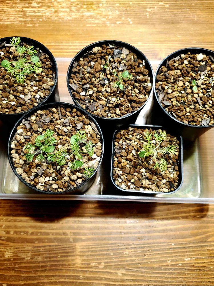 ギラウミニアナ、コミフォラオルビクラリス、ホルトジアナ、パキコムスデスカラーの実生株、、、ってみんな夏コーデックスの苗ばかりだ😅