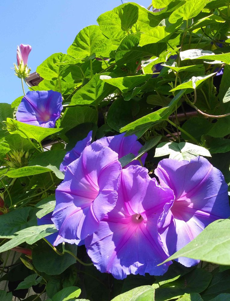 大輪の朝顔が気持ちよさそうに青空に向かって咲いていましたよ🤗✨