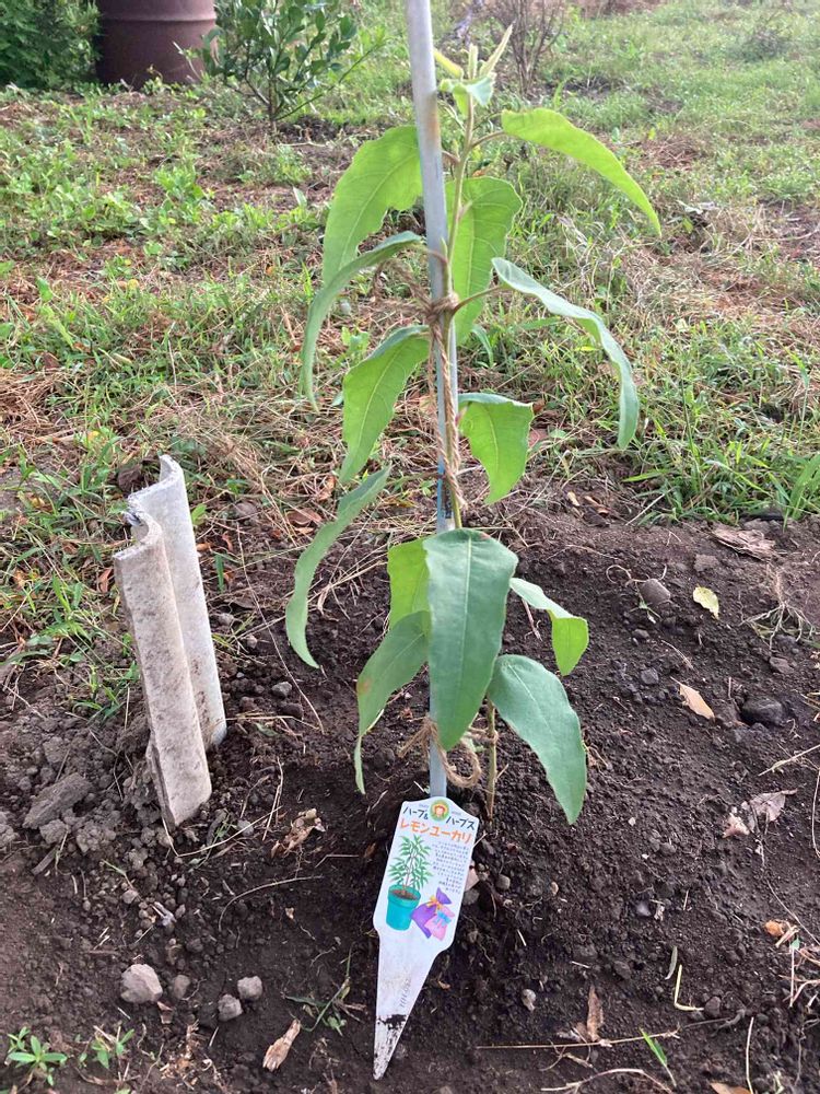支柱もしっかり立ててレモンユーカリを固定してこれから先また台風来るかも知れないから備えを🤓