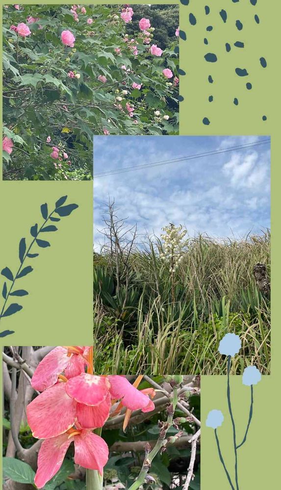 海🏖の浜辺のすぐ上が このような草から花が咲いていて✨✨✨🥰