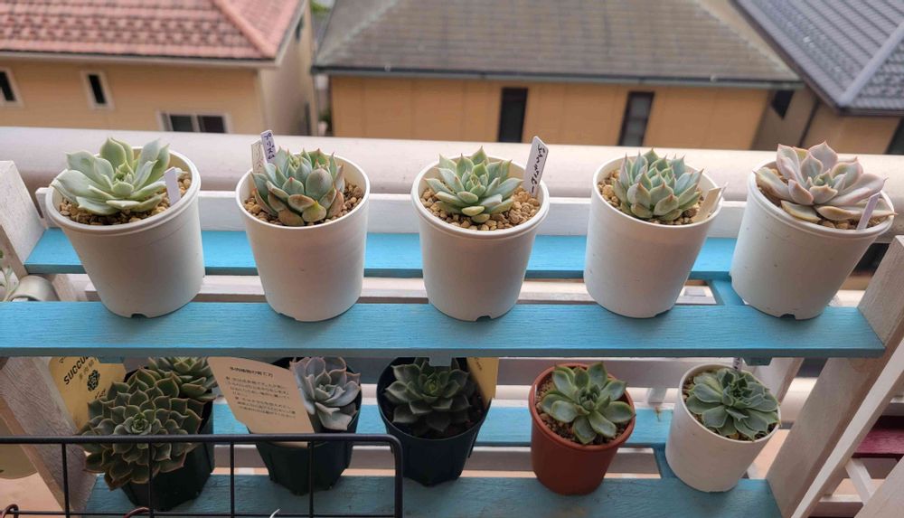 長らくinしてませんでした🙇🏻♀️´- ※2025年1月版プロフ※ 2023年1月、数年ぶりに広島に戻って来ました 沢山の多肉植物と共に神奈川から遠距離引越しをしましたが、春から秋にかけての半年間、突然聞いていなかったマンションの大規模修繕が始まり、ベランダに全く出せませんでした 工事が始まる10日前くらいに聞き、対策もほぼできないまま また記録的な猛暑だったり、自分が体調崩したりでかなりの多肉が消え去りました 大好きな葉挿しも何百ダメになったことか 生き残っても恐ろしい徒長を遂げてたり… (いわゆる2023年の大惨事) で、数ヶ月打ちのめされていましたが、秋から本当に少しづつ、またエケの葉っぱを集めだしました そしてハオとアデに心が拡がっています▶からのポトス増殖しています 特に好き🌱 エケ…ティッピー、爪系、ジャム系 セダム…斑入りパリダム、ドラゴンズブラッド サボ…金鯱、爪ごつい系 ハオ…軟葉系 チラ…フックシー、ブルボーサ リト…大津絵、オリーブ玉 他多肉…姫秀麗、レッドベリー 観葉…パキラ、モンステラ、ガジュマル、ポトス 塊根…アデニウム 花…チューリップ、ガーベラ アイス…ミルクレア お菓子…ボンタンアメ 欲しい🌱(ダメにした子も未経験の子も含む) エケ…下山コロラータ、コタロウ、シムランスLS、レッドベルベット、ラブウェーブ ハオ…花火、スターサファイア、ブラックオブツーサ アデ…黒いの、巻いてるの 他多肉…碧魚連、レッドベリー 葉挿しまで含めると一体何百あるのでしょう… ここへ来て、やっと増やしたい欲が1/3くらいに落ち着いたので、2025年は本当に欲しいものだけを! と、割と何年も思ってるのですが、今年こそは そして冬越しは、アデ2株、ハオ3株くらい失敗しそうです まだ勝負は付いてませんが そしてブロウメアナは寒さに強いの? 1月になって花が咲いてきました(ベランダ放置で) 全く知識ないので驚いてます めっちゃ長いプロフを最後まで読んでくださった方、いらっしゃったらありがとうございます😊 同じ名前の方が多そうなので3回繋げてみました(笑)