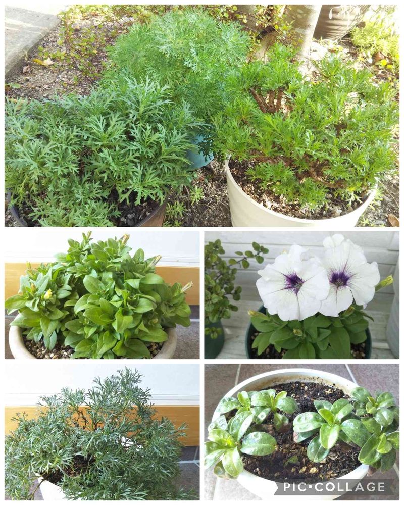 真ん中左は、花色が気に入って買ったけど名前が分からないペチュニア。