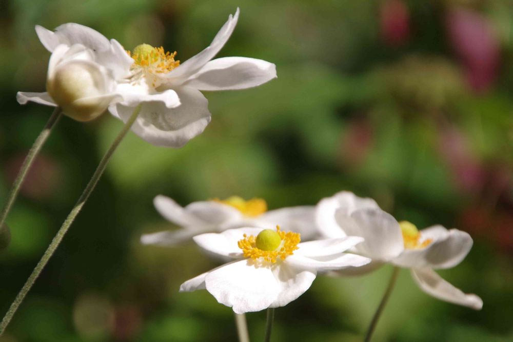 レイクガーデンの木漏れ日のなかで、恥ずかしそうに顔をほころばせているシュウメイギク(秋明菊)
