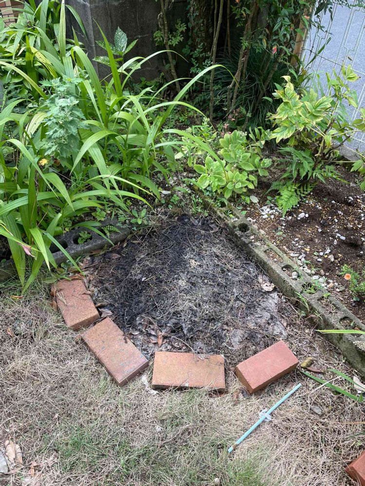 庭の隅っこで腐葉土作り。これからの季節、落ち葉もたくさん出るからそれも材料に(^。^)