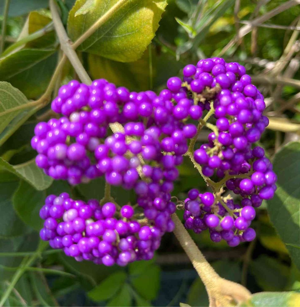 なので、コムラサキは枝の先端まで少量の房が複数付くので、その重さで枝垂れます。🤎💜💚💜💚💜⤵︎