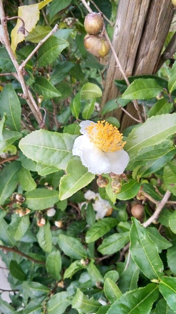 朝の散歩道、Kさん宅の垣根に咲いています。