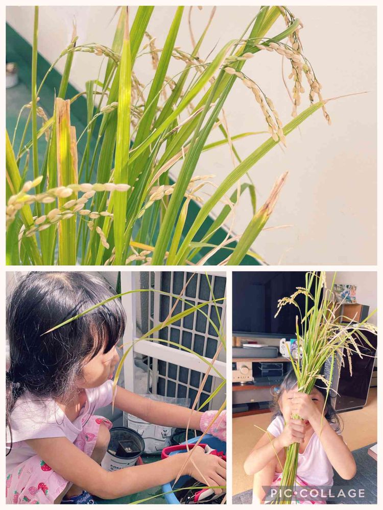 昨日はバケツ稲の刈り取りしました🌾