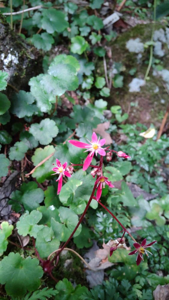まだ吉和は雨が降っていますが赤いダイモンジソウが咲き始めました🌺