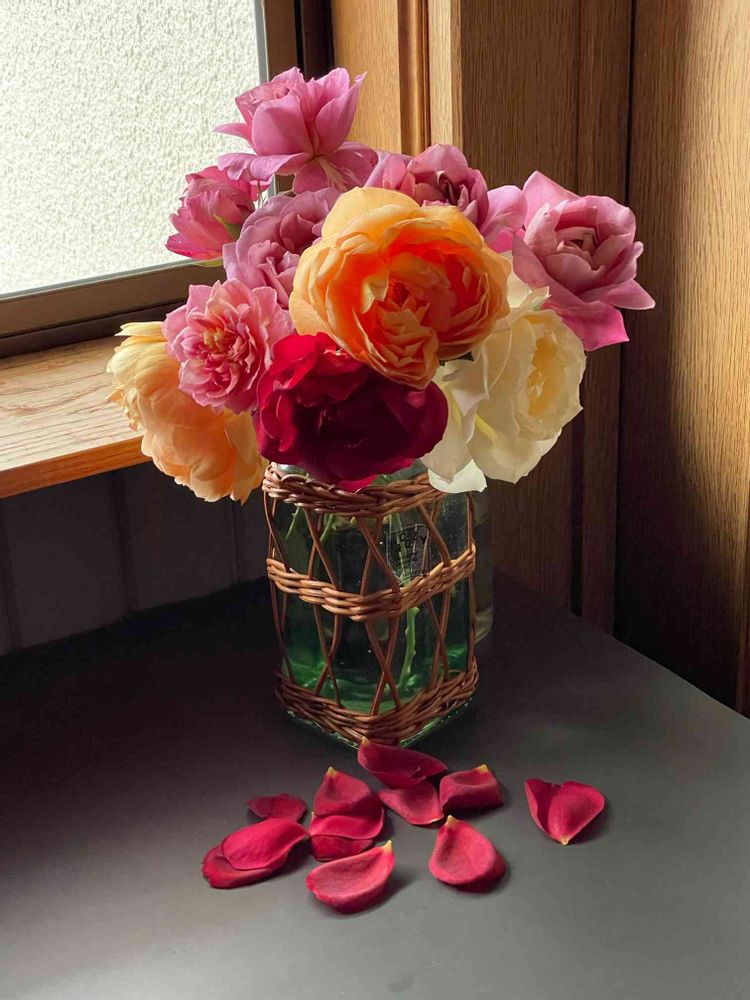 こんなに沢山のバラをお庭から切って生けるなんて、中々できないことです。