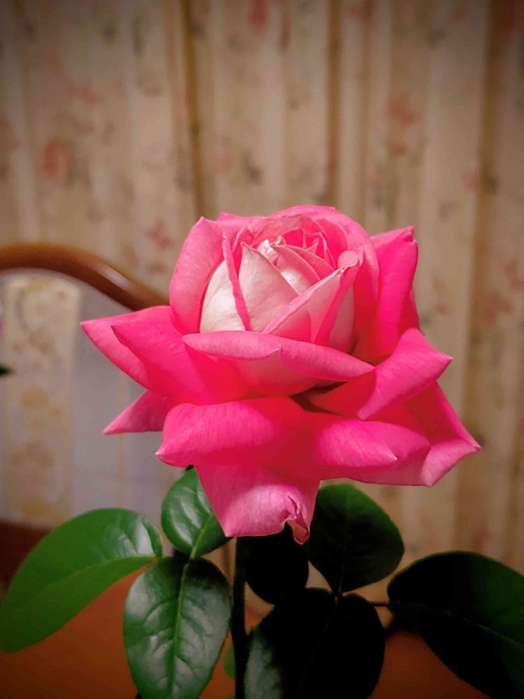 目で見る実物の花は、もっと美しい。白っぽい花びらの外側の色は、黄色がもう少し強く、内側の花びらとのコントラストがとても良い。また、内側の花びらの色は、少しオレンジ色が混ざり、なんとも言えない温かく包み込まれるようなピンクである。