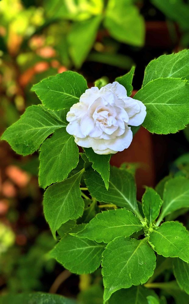夏のほったらかしの暑い時期を乗り越え、開花してくれた八重のインパチェンスさん🤍