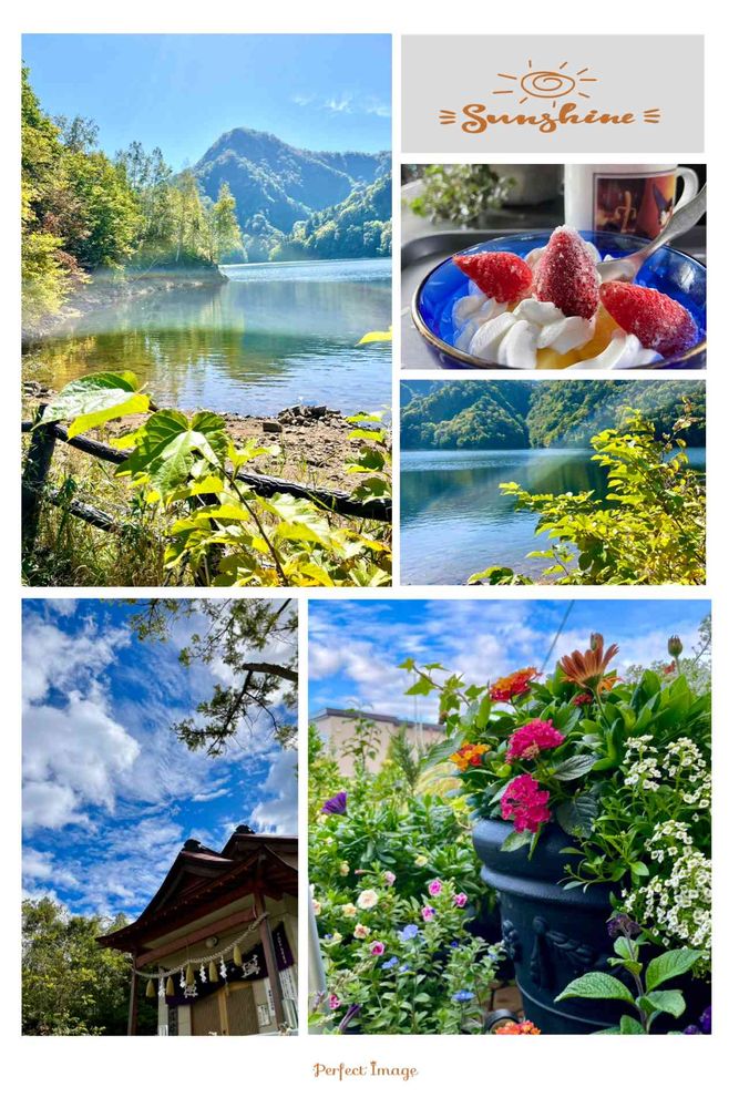 ↖️➡️札幌湖(土曜日の午前中)暑かった😅 ここにも、虹の光🌈が写りました〜