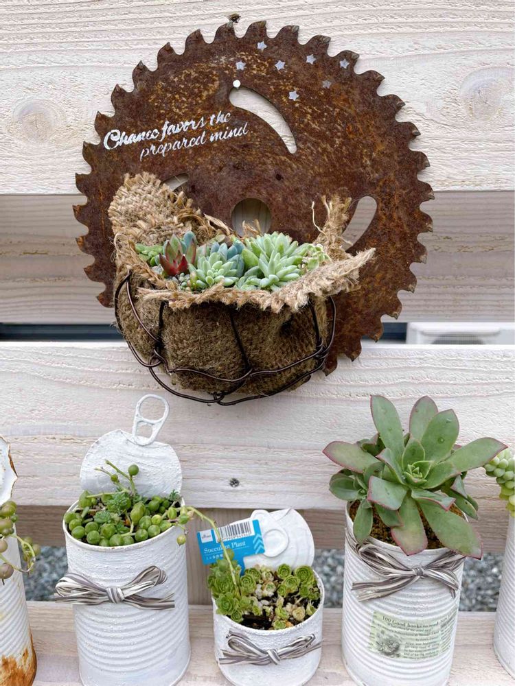 草刈り刃ワイヤーかご寄せ植え素敵ですよ~👍️