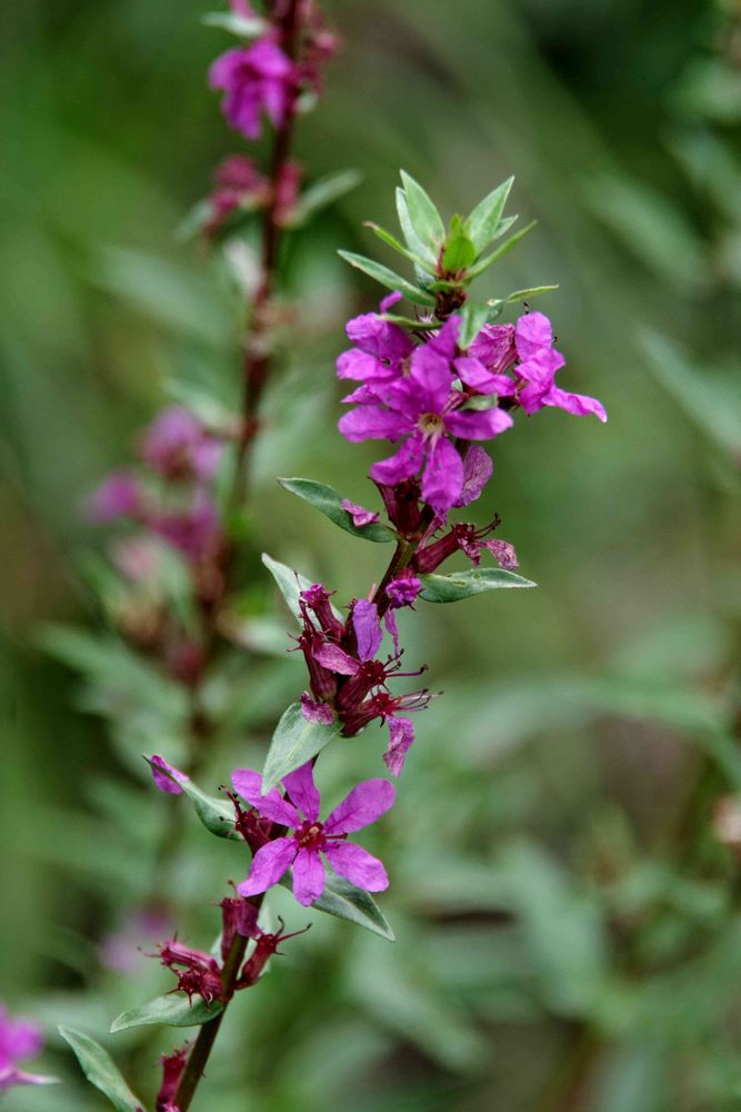 細い茎に赤紫の6弁の小さな花をたくさん着け、湖畔を飾っています🎶☀️