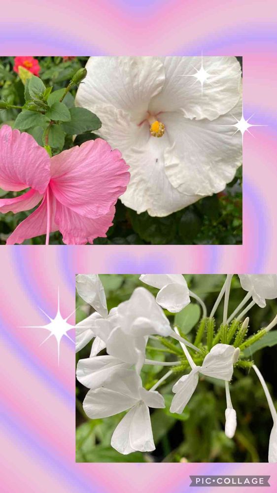 昨日蕾が大きくなってた少しホワイトオフのハイビスカスさんがピンクのハイビスカスさんとお隣同士で咲いていました^_^♡