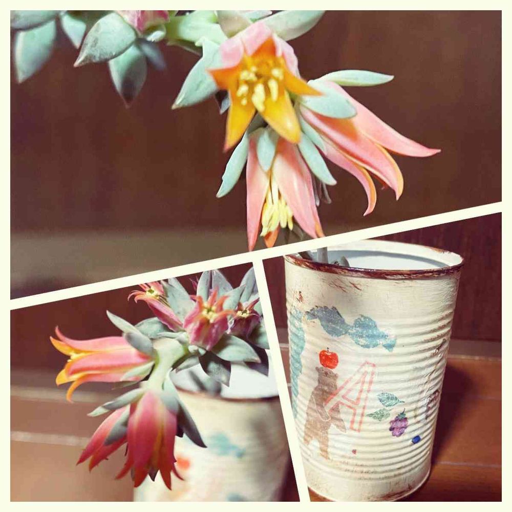私が作ったリメイク缶にさしています。😊