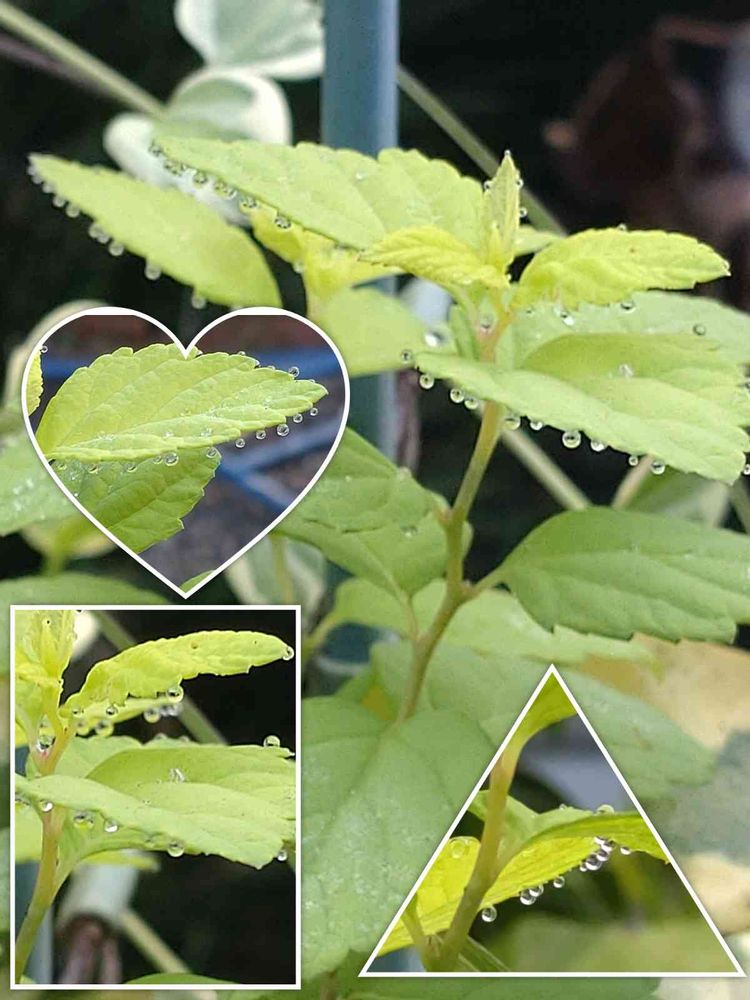 今朝!寄植えを見てみたら、朝露💧が葉っぱ🌿にドッサリ!💧💧💧💧💧