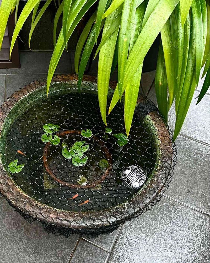 多少の🐟増減は仕方なしなのですが、睡蓮はひっくり返り水は濁り、、やむを得ずの策を講じましたよ
