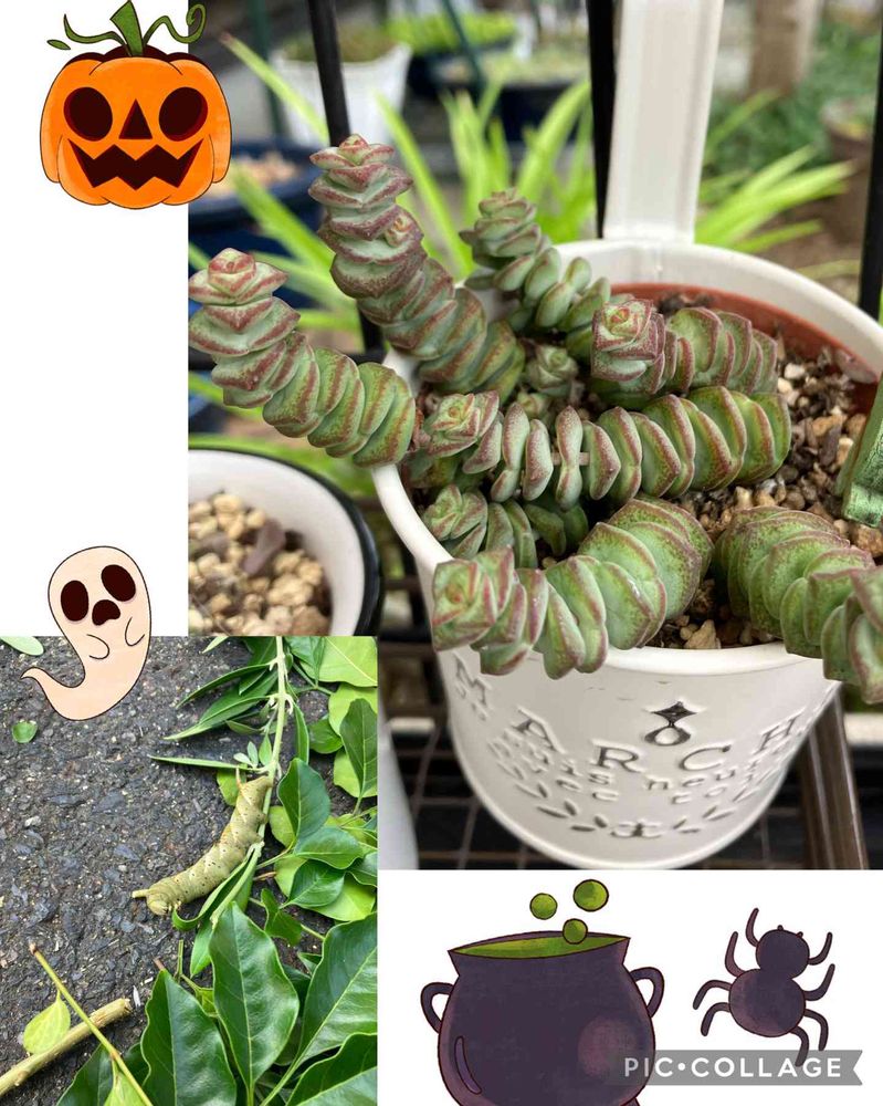 さん 芋虫は気持ち悪いよねー見た目と動きが何とも言えない😱😱 良く似てるね多肉ちゃん(´⊙ω⊙`)ワォ