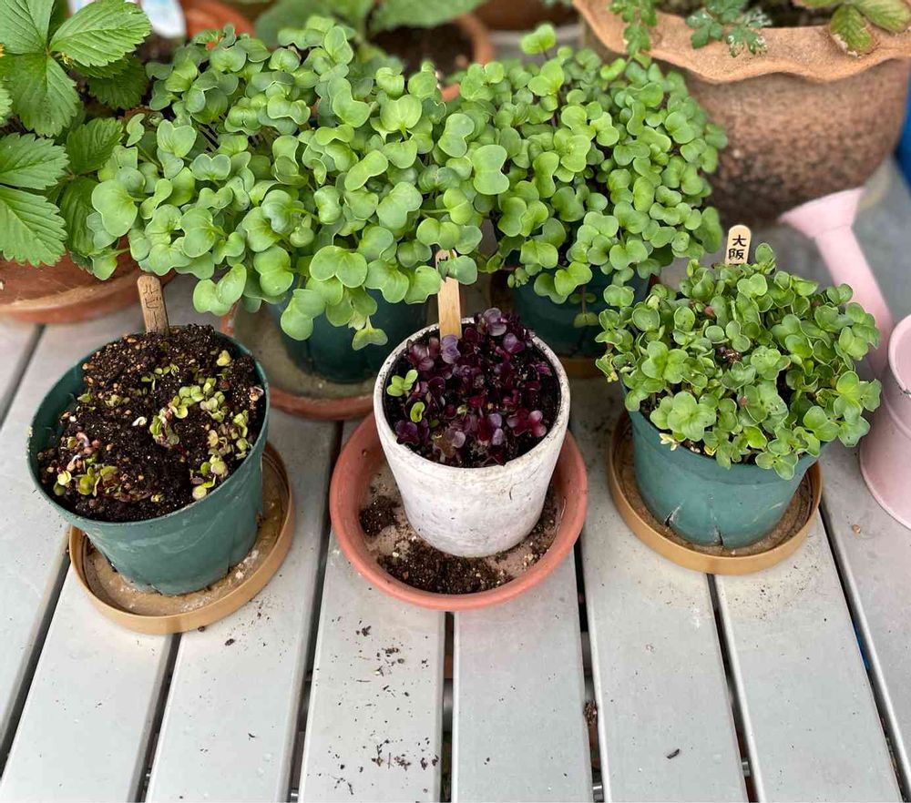バルコニー/ベランダ,ルビーカイワレ大根栽培,紫カイワレ大根栽培の投稿画像