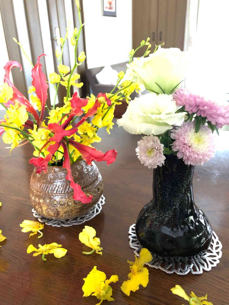 家にある花を早速自作の花瓶に挿して、幸せ気分です🥰