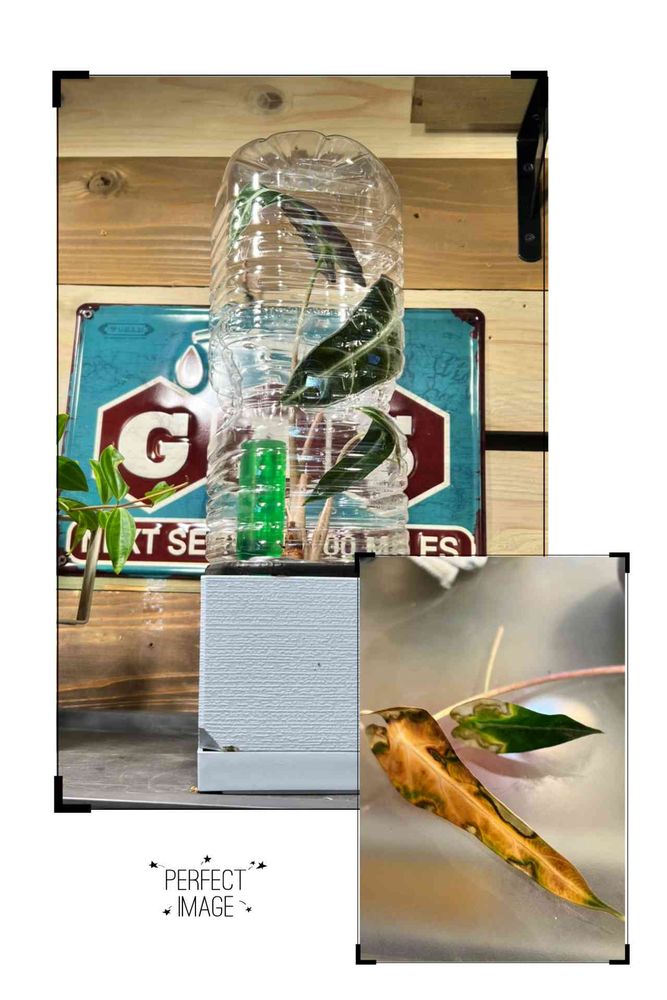 部屋に入れてペットボトル被せてみたけどどーなることやら…( `・ω・) ウーム…やっぱり気難しいアロカシア…😓🌿