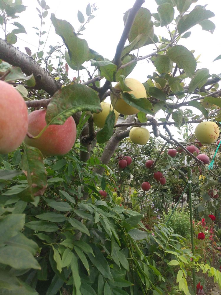 フジ、シナノゴールド、紅玉のを接ぎ木して成らせています。もう直ぐ収穫🎵🙋