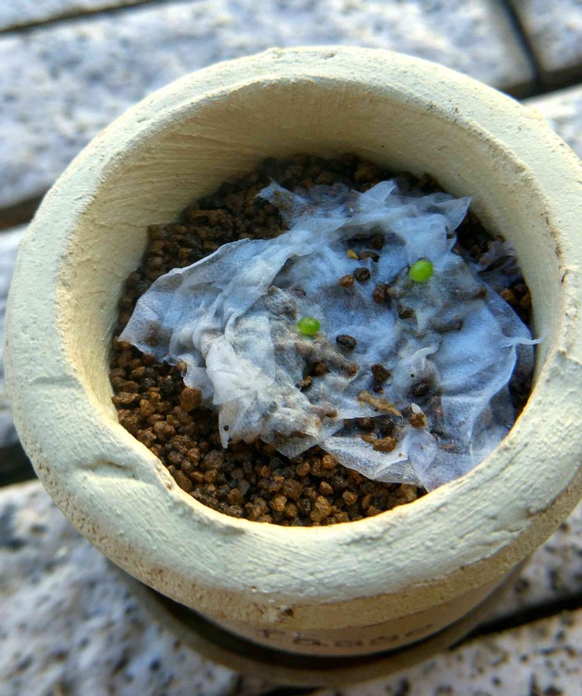 昨日、次男の彼女が、サボテンを種から育てたい、と言ってたらしくて、発芽中の2つと黒い1つを分けてあげました。