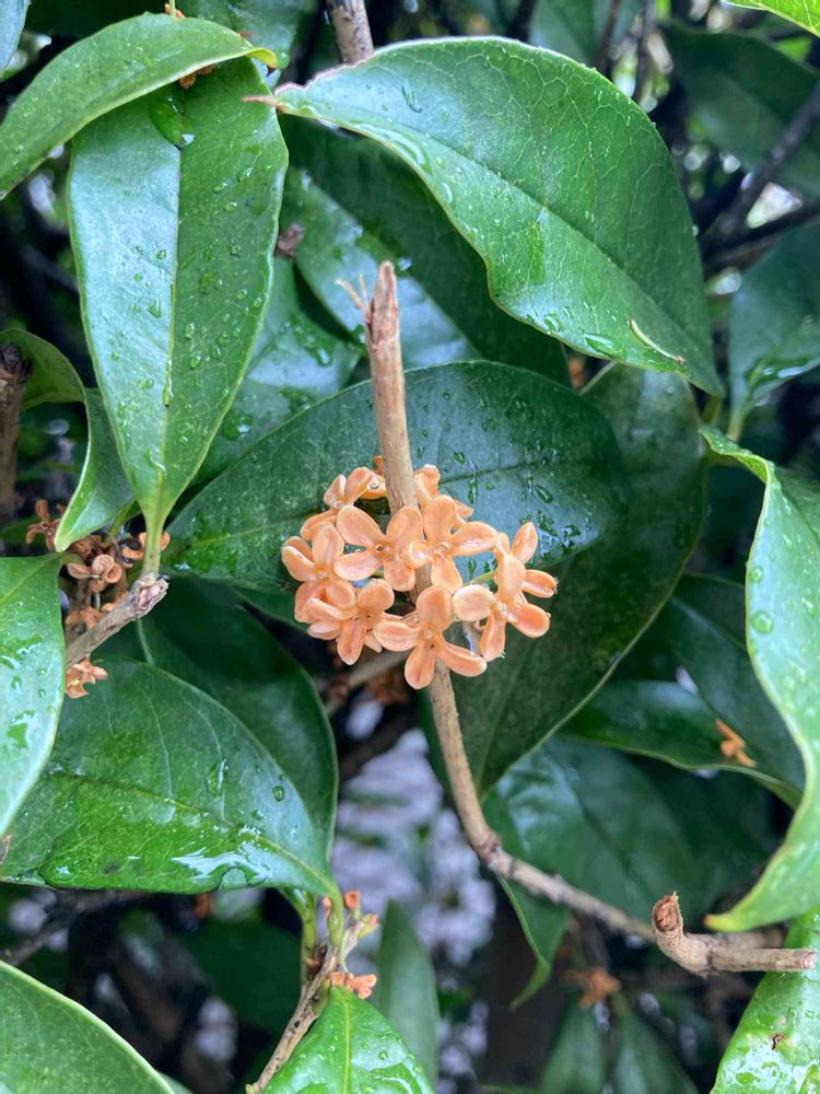 雨に濡れた金木犀さんですか密かに咲いてます✨小さな小さなお花さんですが可愛いですね!いつもだったら窓からいい馨⤴️