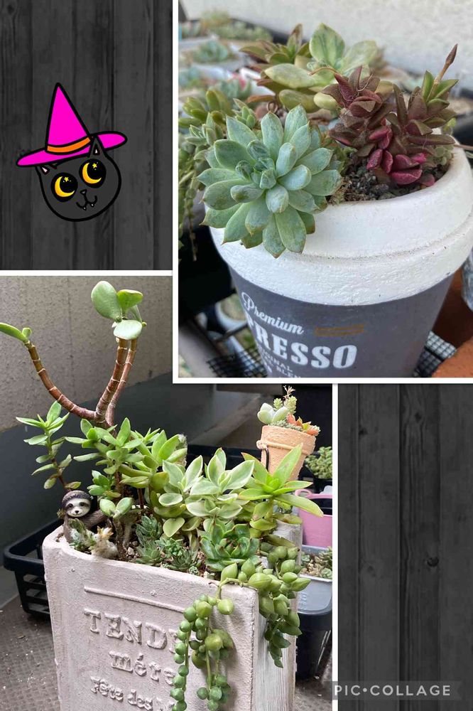 ブック鉢にさり気なくいるナマケモノ🦥さんとかピックのミニ寄せ植え鉢とか、あー懐かしいし可愛い💖と一人ニヤニヤの私😍