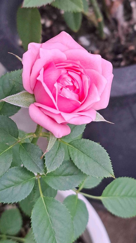こんばんは😃🌃今朝の会社のミニバラピンクです。