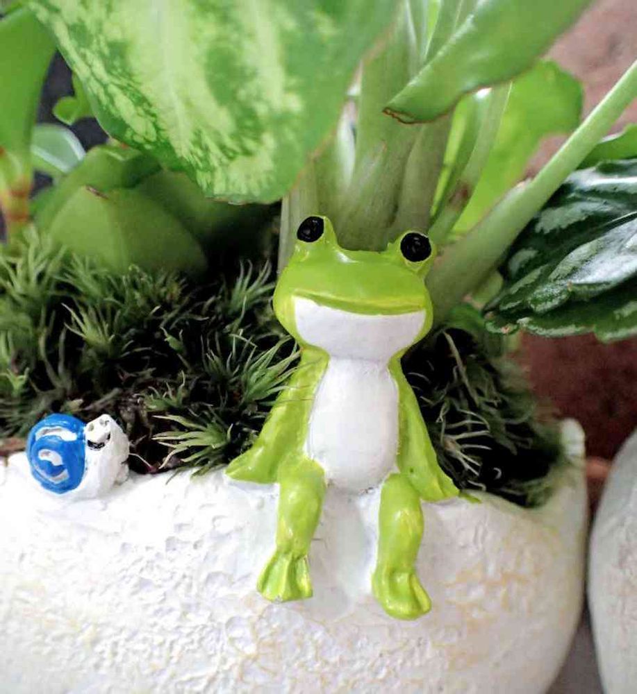 毎月6日はカエルの日~🐸前出のミニ観葉寄せ植え、カエルに寄ってみました~拡大するとちょっとブッキーかもですね😅💦左にカタツムリちゃんもちょろっと🐌